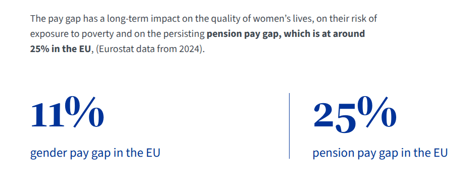 På EU-niveau ligger løngabet fortsat omkring 11 %, samtidig med at EU selv fremhæver, at manglende gennemsigtighed er en central årsag til, at ulige løn ofte forbliver usynlig (Council of the European Union, 2024). (Consilium – Pay transparency in the EU).