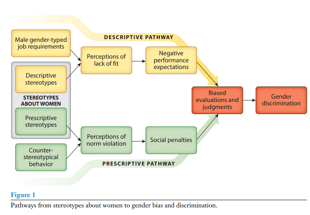 Heilman, M. E., Caleo, S., Manzi, F. (2024). Women at work: Pathways from gender stereotypes to gender bias and discrimination. Annual Review of Organizational Psychology and Organizational Behavior, 11:165-192. https://doi.org/10.1146/annurev-orgpsych-110721-034105